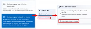 - Au moment de la demande de compte Microsoft, cliquez sur Options de connexion sous le champ