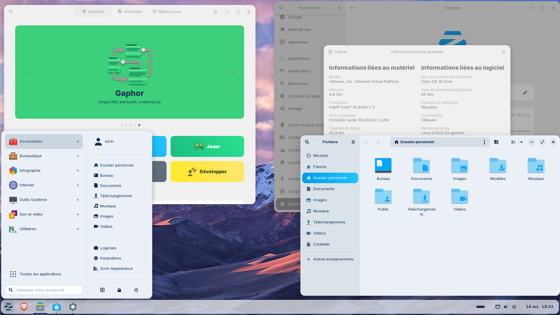 - Zorin Core est basé sur Gnome et propose 4 différentes dispositions d'interfaces : Windows, Windows List, Chrome OS et Gnome Shell