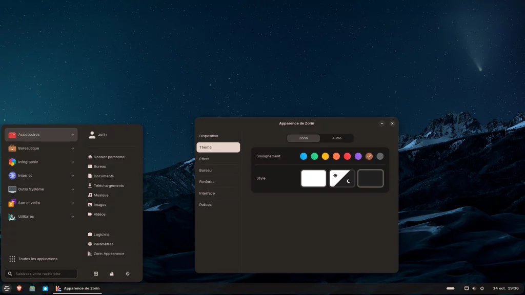 - Zorin Lite, prévu pour les vieux ordinateurs, est basé sur XFCE et propose uniquement 2 dispositions de bureau : Windows et Windows List